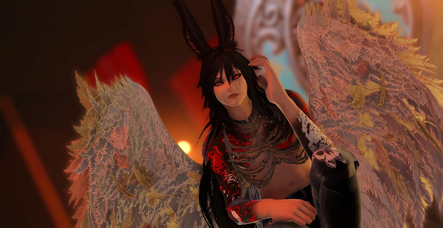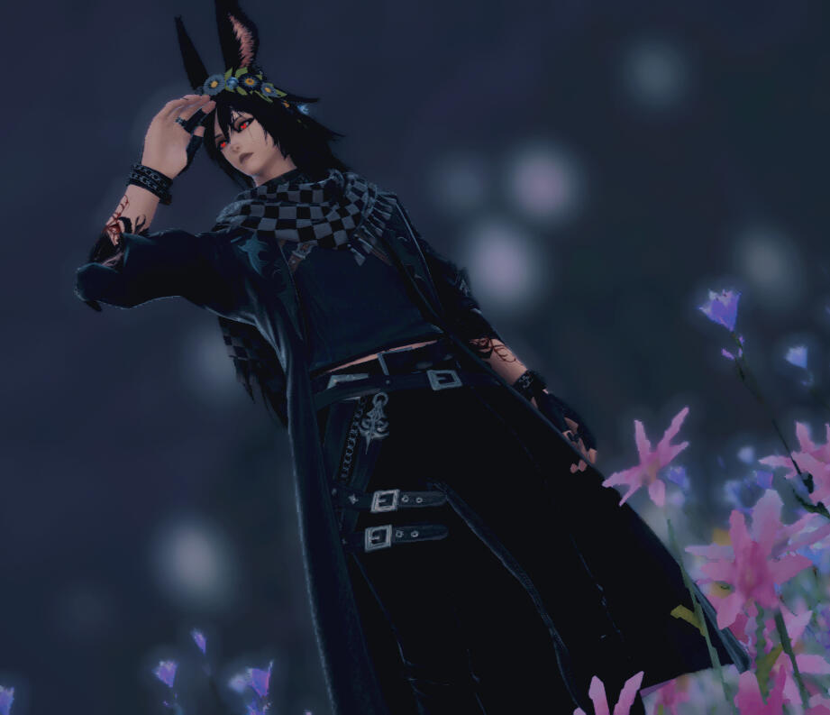 A man of mystery, not much is known of Choso's past. What he chooses to share is dubious at best and conflicts with itself. Some people say he's a former courtesan, running away from debtors in Ul'dah. Others say he was an orphan abducted and turned into a vampire. Some even say he has no history at all, simply appearing one day in the Black Shroud, surrounded by voidsent. Choso declines to confirm any of these, but finds amusement in dropping tidbits to those prone to spreading rumors. It keeps up his image, he says, and prevents anyone from finding out too much about his true intentions.